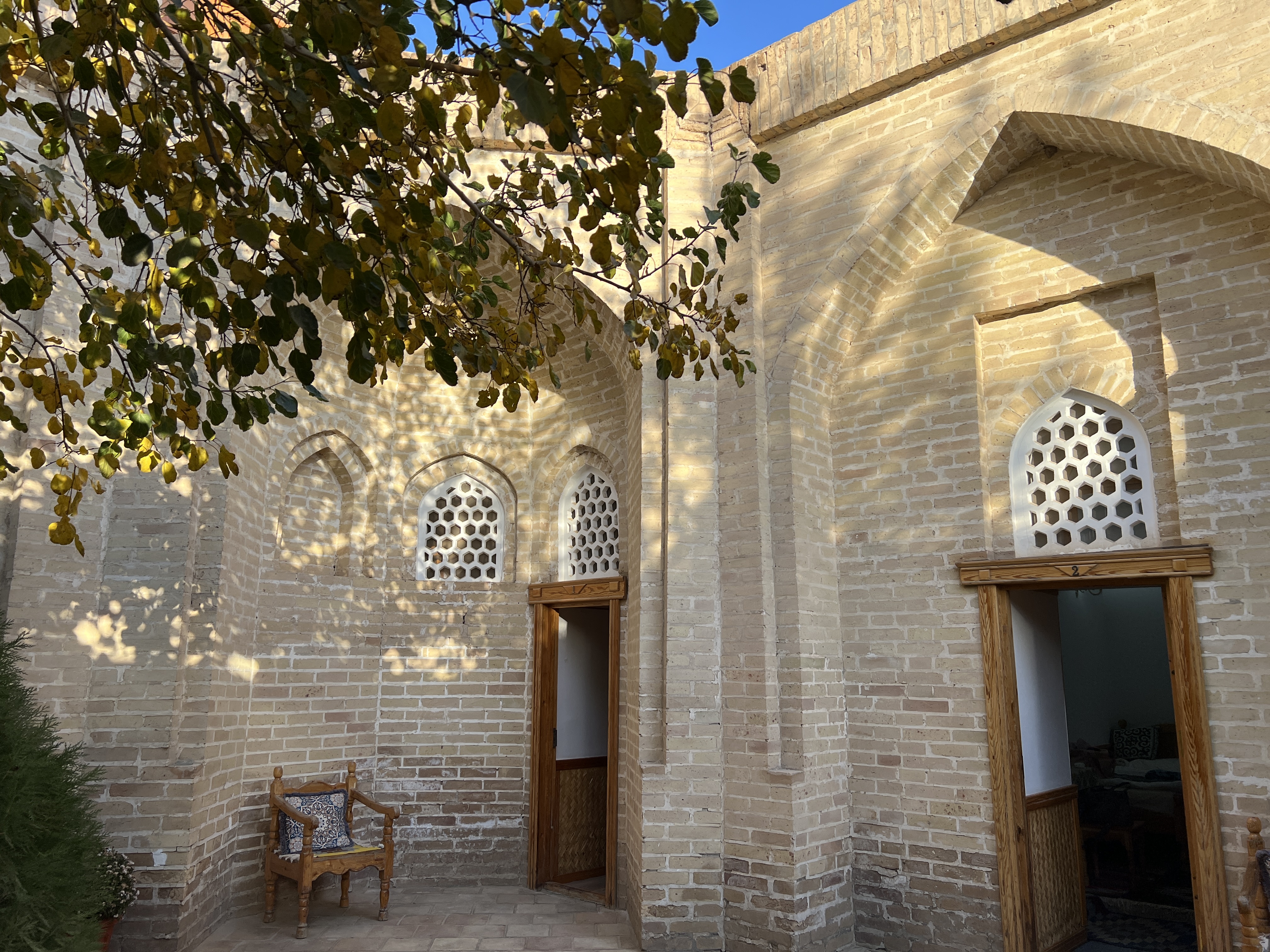 希瓦的住處:由經學院改建的精品酒店,環境清幽,院內有一座宣禮塔可供客人攀登遠眺