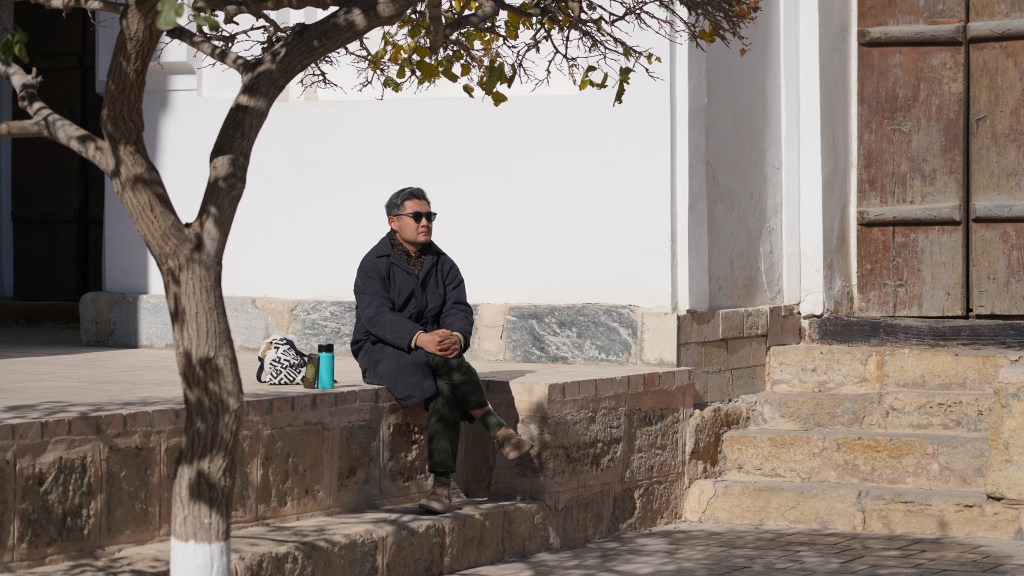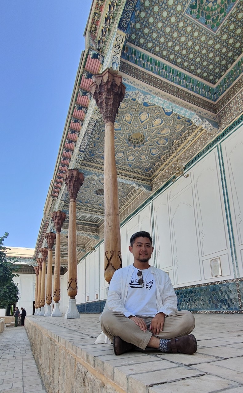 在這巷道的盡頭的亭子旁邊,是一片高高的石頭台子(dakhmas),就是安葬後來的昔班尼王朝的王公貴胄們的墳塋。穿過這些安靜的台基,再往左走,就會通向另一道大門————「平安門」,如果就此向右,就是通往核心區域的「冠冕門」。我曾有一次在這裡遇到了一位來自青海循化的韓大哥,他是撒拉人,長居烏茲別克斯坦,對他而言,這裡實在是方便得很,他用撒拉語是可以基本順暢地和烏茲別克人進行日常交流。畢竟撒拉人的祖先就是來自撒馬爾罕一帶。