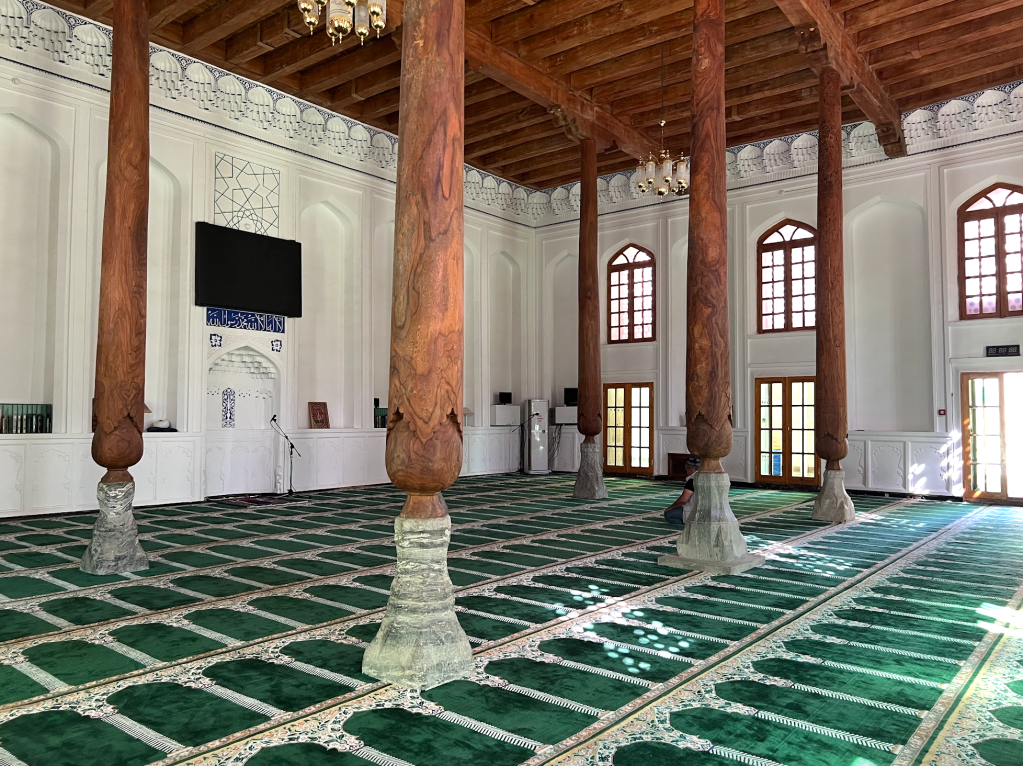 從平安門走回頭路,穿過王公貴族的石頭高台墓地(dakhmas),回到冠冕門,從這裡進去,就會來到一個內院,這裡是整個建築群的最核心地點。在這裡,有靜室(chillahana)、水池、有冷飲亭、圍廊、清真寺,以及和卓的墓地。靜室,這是在蘇菲傳統中常見的場所,源於波斯語的 chehel(四十)+khana(屋子),也就是「四十日修行之室」,也可以翻譯成「靜室」。