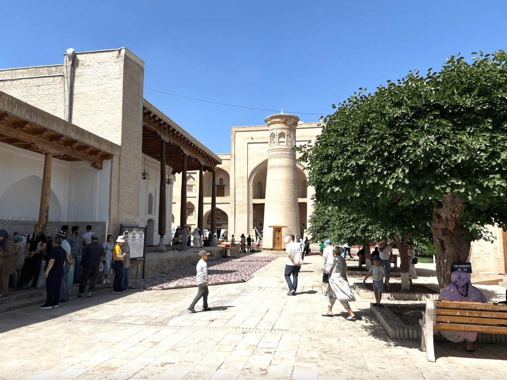 近代的一些偏執的人,不明內情,總是批評一些文化繼承和調和的行為是異端,實在是過分了。在美麗的布哈拉,我們又一次看到,如同歷史上那些外型如教堂、宮殿、寺廟一樣的清真寺建築一樣,我們不只看外殼和形式來決定一個事物的本質,而忽視其內在的功能和意義。在廣闊無比的伊斯蘭世界中,信仰像是一條清澈無染的河流,凡是流經的地方,都顯現出河床顏色的顏色。這條河流流淌在中亞的土地上,就顯現出中亞的顏色,流淌在非洲,就顯現出非洲的顏色。這種多樣性,恰恰是tawhid(認一)的反映。如此而已。當全世界的伊斯蘭建築只是邯鄲學步般模仿阿拉伯半島上的某種現代清真寺樣式,無疑會造成審美上的貧乏和空洞化。